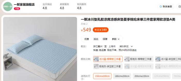 一默家一直坚持A类品质,这款冰川垫乳胶凉席也一样。