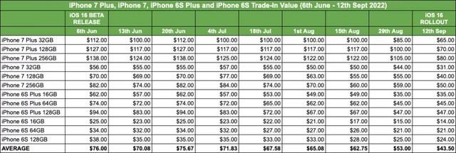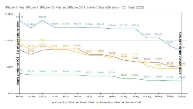 此外,在二手回收市场上,市场研究机构 SellCell 发布了一份报告,分析了来自 40 多家回购供应商的数据,研究了 iOS 16 系统发布对 iPhone 6S 和 7 型号价格的影响情况。报告指出,由于 iPhone 6/7 系列机型无法升级至 iOS 16,其在二手市场的价值下降了 42.8%。