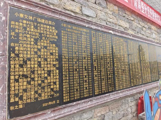 至于篮球氛围,小寨村文体中心门口的立着一块石碑,上面密密麻麻列着900多人的名字,其中一段文字写道:“在筹建过程中,上至耄耋老人,下至稚小孩童,各尽其能......历时一年,款物尽用,已达百万,遂成此功。”