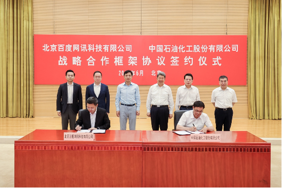 6月14日,中国石化与百度签署战略合作框架协议。双方将在石化行业人工智能、互联网+新业态、数字化转型升级等领域深化合作,提高智能制造水平,赋能实体经济,推动双方在合作共赢中实现高质量发展。