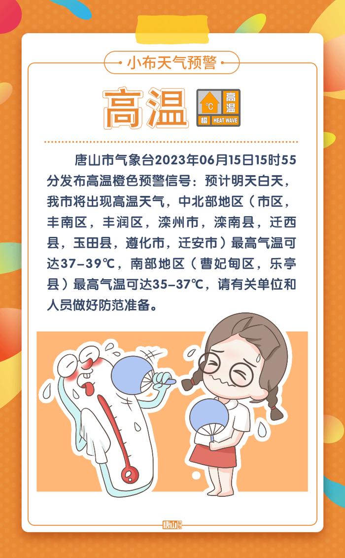 最高温39℃!唐山发布高温橙色预警!