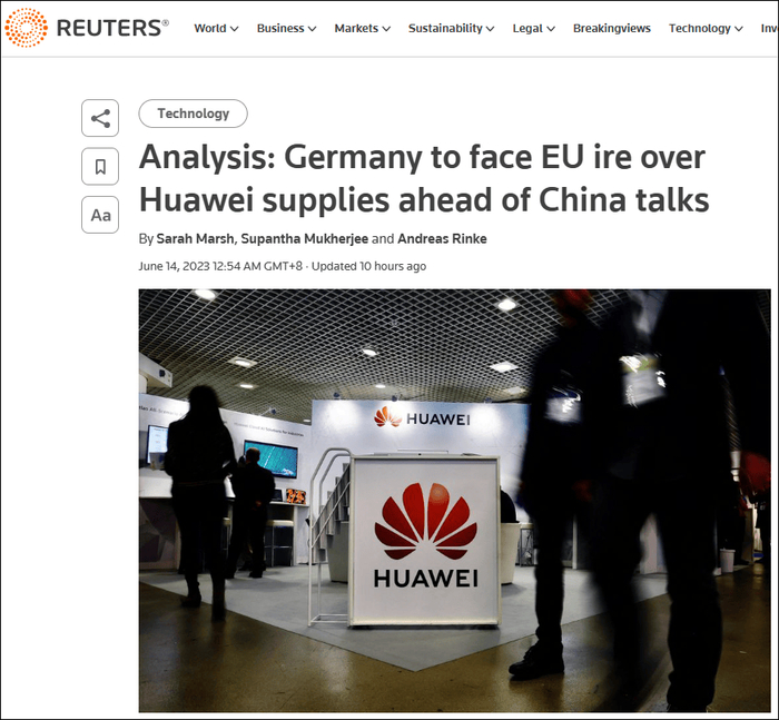 在会议前,欧盟正大量密集敦促德国,采取更多措施,减少其5G网络中使用华为设备。
