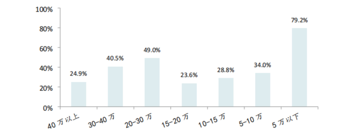 不同价格带新能源汽车市场渗透率