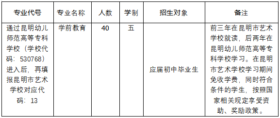 面向全昆明市招收1个普高艺术班,共50人(可全部住宿)。