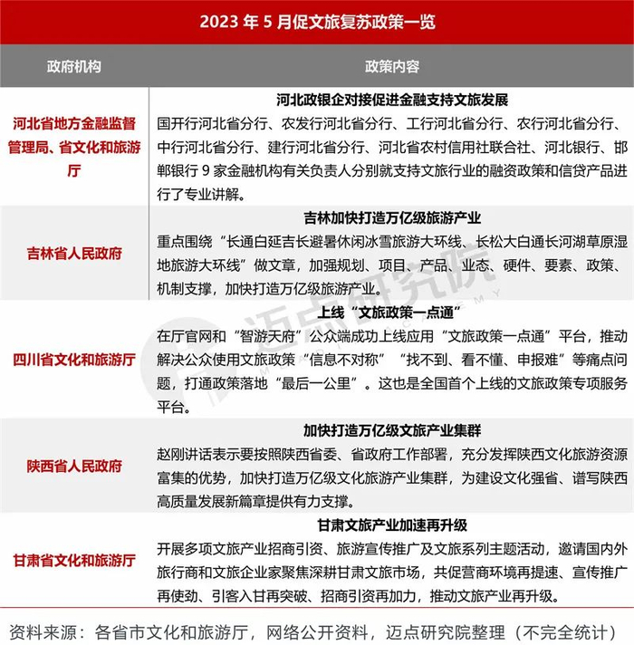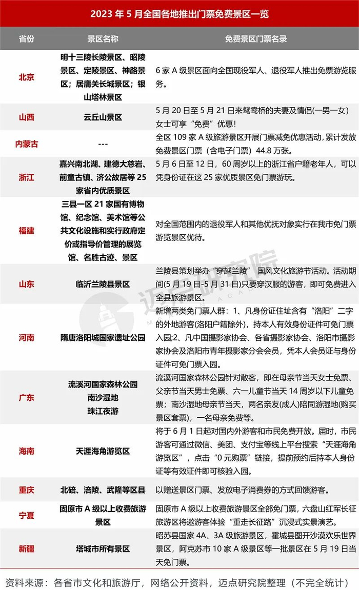 5月受五一假期与“中国旅游日”影响,各地相继出台助力文旅产业高质量发展政策,在经济、服务、宣推等各方面展开扶持。同时,各地政府平台为5月的消费蓄力,相继出台纾困政策以及释放旅游消费潜力政策,如推出“二人同行,母亲免费”、“520情侣同行,女性免费”、“文化节,穿汉服免门票”、“老人错峰旅游免门票”“酒店、机票消费券”等相关高强度优惠政策,为推进各地旅游,促进消费加速赋能。