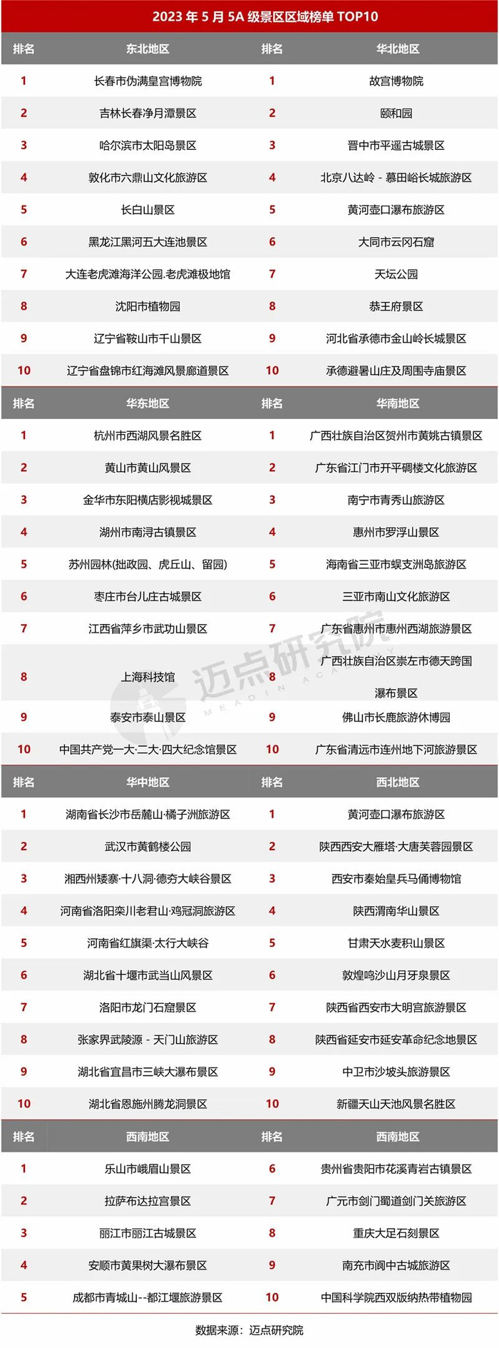 (2)5A级景区7个区域细分榜单TOP10