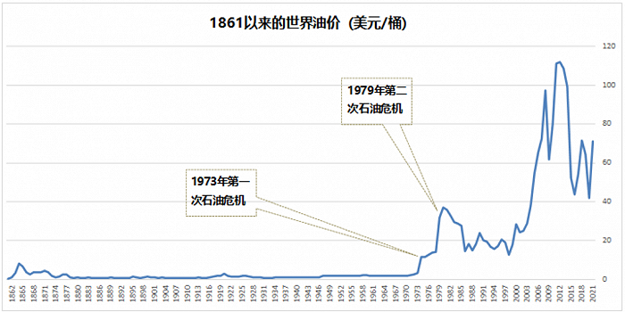 1973年第一次石油危机的背景是第四次中东战争,你当然会问,中东是产油大户,既然前面还有三次中东战争,那为什么油价没怎么波动呢?原因自然是布雷顿森林体系美元跟黄金挂钩,相当于石油以黄金计价,油价当然稳定。现在美元从美金变成纸币了,那价值自然不是同日而语了。