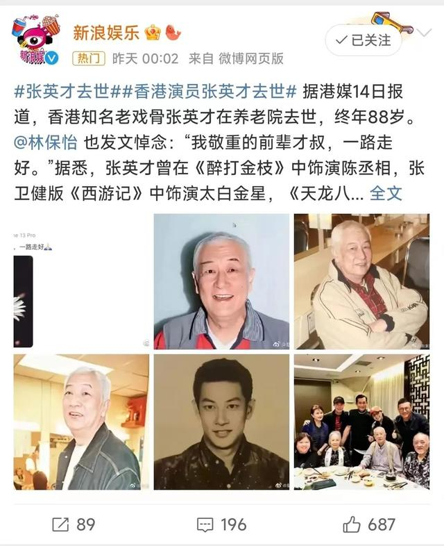 其后,资深配音员丁羽证实张英才死讯,香港作家沈西城亦于社交平台发文表示:“张英才也走了。”引来大批网民悼念。