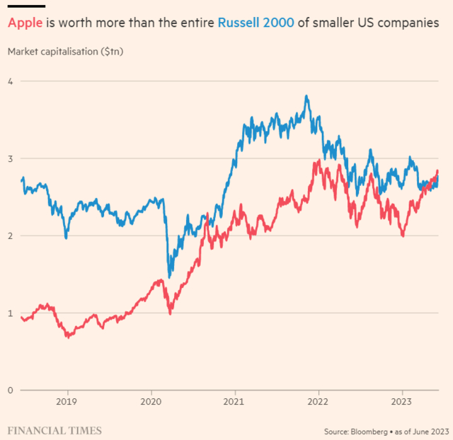 仅苹果市值就超过英国前100家上市公司市值之和,大摩警告:“少数巨型股”的胜利正在掩盖市场上更广泛的痛苦。