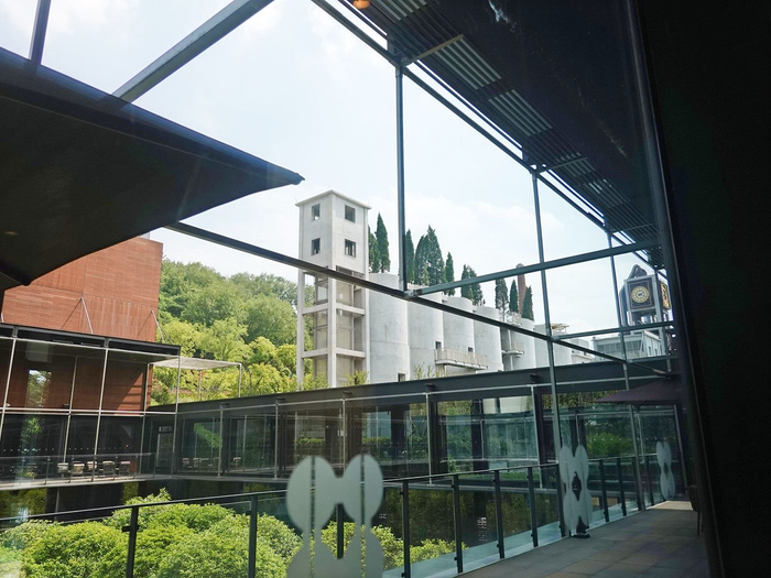 酒店所在的“时光艺谷”园区原是银佳和昆元白水泥厂的旧厂房,两个白水泥厂均脱胎于20世纪初孙中山兴办的中国水泥厂。屹立于百年旧址之上,珺懋从独特的自然地貌与历史背景中汲取灵感,展开了一场工业与自然之间富有张力的对话。建筑外形由中国工程院院士崔愷设计,外立面的格栅材料自带天然的纵向拉伸纹理和不均匀的灰绿色斑驳,非常像竹子的天然质感,新的、轻的结构跟水泥厂的厚重历史形成反差,也让珺懋溶解在窗外的竹海中,提示着一度以环境为代价的水泥混凝土如今已与氤氲绿植融会贯通。层层递进的庭院和回廊方正规整,与茂林修竹的自然风物共同形成一片东方秘境,见证着百年工业遗存的精彩重生。