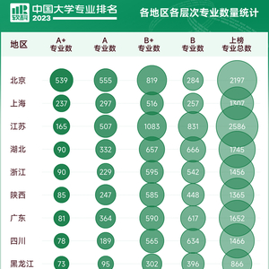 6月15日,高等教育专业评价机构软科发布“2023软科中国大学专业排名”,陕西共有46所高校的1365个专业上榜,上榜专业总数全国第九,其中,A+专业数85个,A专业数247个,B+专业数585个,B专业数448个。陕西高校顶尖专业(A+)数量全国第六,仅次于北京、上海、江苏、湖北和浙江。陕西高校25个本科专业排名全国第一,冠军专业数量全国第五。