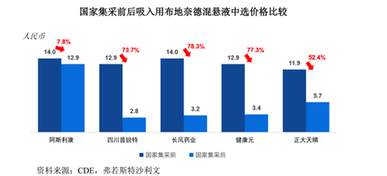 2021年6月,吸入用布地奈德混悬液被纳入第五批全国药品集中采购目录,原研厂商阿斯利康产品落选。本次集采中选企业分别为四川普锐特、长风药业、健康元和正大天晴,集采周期为3年。
