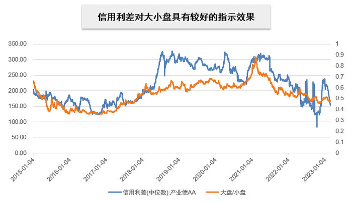 此外,国内信用利差自2021年以来持续下行,反映当前国内整体宏观环境为“”风险可控+流动性宽松”,有利于小盘股表现。
