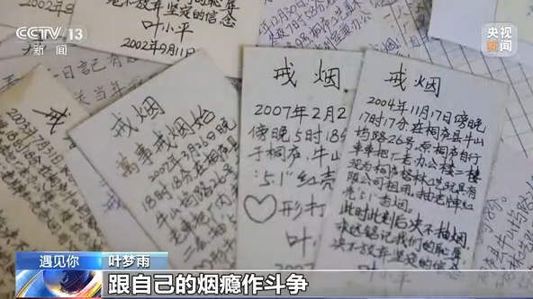叶梦雨:我发现爸爸从90年代开始就有那么多的戒烟卡片,就是他一直在试图努力戒烟,跟自己的烟瘾作斗争,但是他始终还是在戒烟的路上。