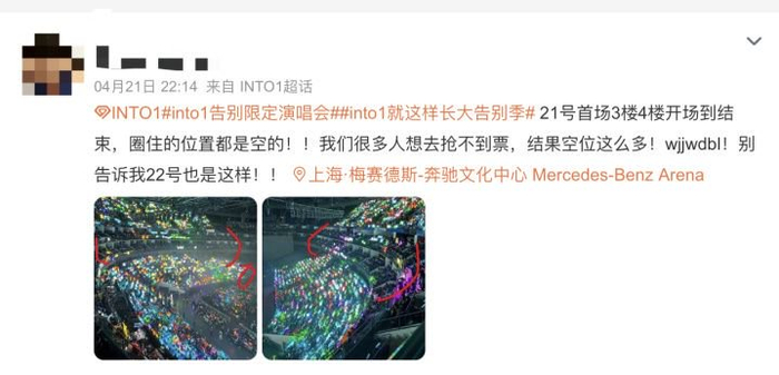 比如人气男子组合into1演唱会曾出现看台前排座位集体空缺,韩国女子组合Blackpink某场演唱会也曾出现某部分位置上座率堪忧的情况。对“黄牛”来说,某些高价的前排票,宁愿砸在手里,烧掉撕掉也不愿低价售出。曾有“黄牛”把流量组合演唱会第一排的票全部背回,表示就算变成纸也不卖:“这是‘黄牛’的从业原则,我就算背回家扔了也不贱卖。”