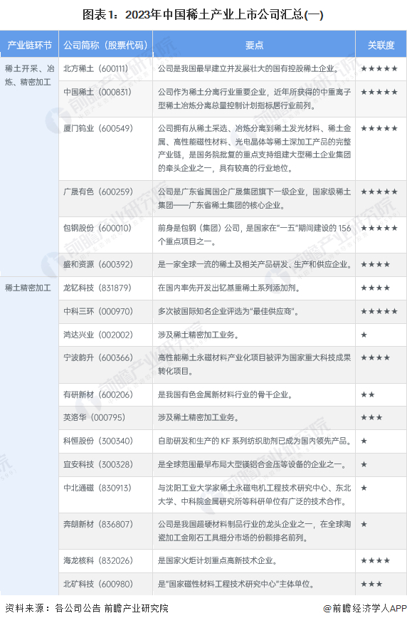 1、稀土产业上市公司汇总