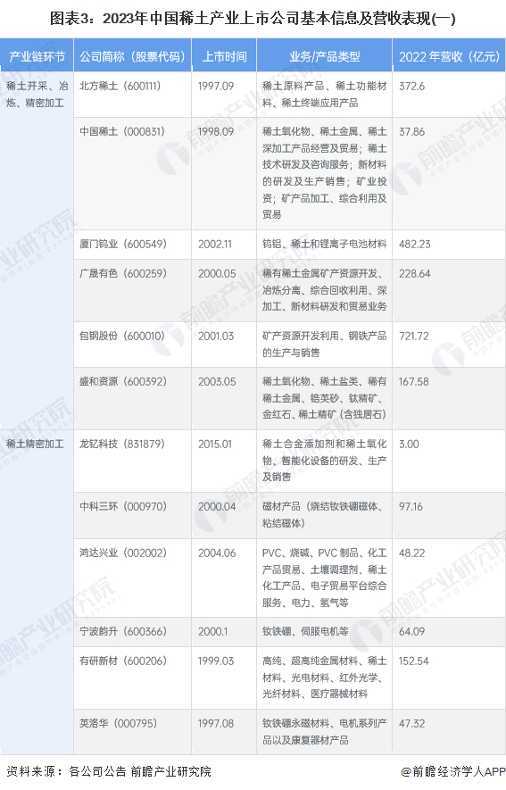 【最全】2023年稀土产业上市公司全方位对比(附业务布局汇总、业绩对比、业务规划等)