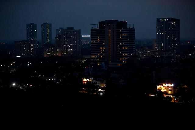 ↑6月5日,越南河内为节电关闭室外公共照明。图据东方IC