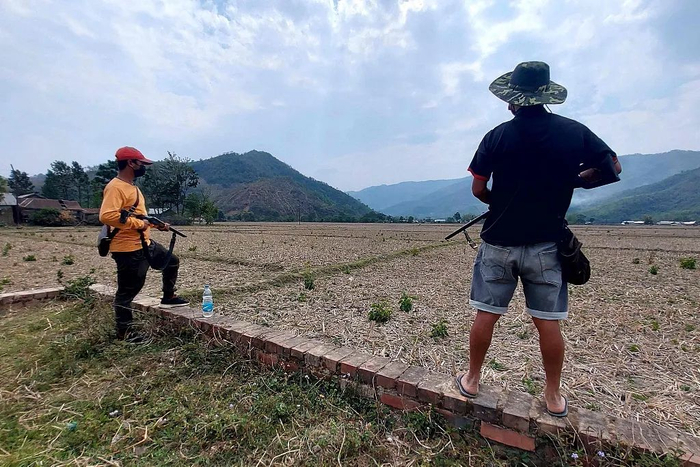 当地时间2023年5月30日,印度英帕尔,曼尼普尔邦发生暴力冲突事件,Dolaithabi村村民武装站岗。视觉中国 资料图