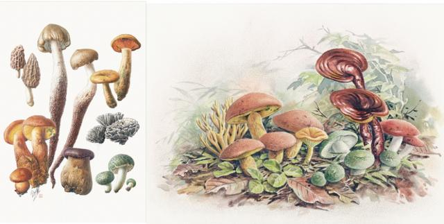 《菌中毒》的浪漫不仅来自于文字,还有近60幅的真菌博物画。“中国植物科学画第一人”曾孝濂与博物画家杨建昆,用鲜亮的颜色与细腻的笔触高度还原了蘑菇之美,流露着对自然的崇高礼赞。书中特别呈现纸上博物馆——“蕈海撷英”,汇聚曾孝濂1975年以来创作的真菌题材博物画。此外,著名诗人于坚为本书作序,真菌专家杨祝良教授勘误,为每一种菌的插图标注了准确的拉丁文学名。