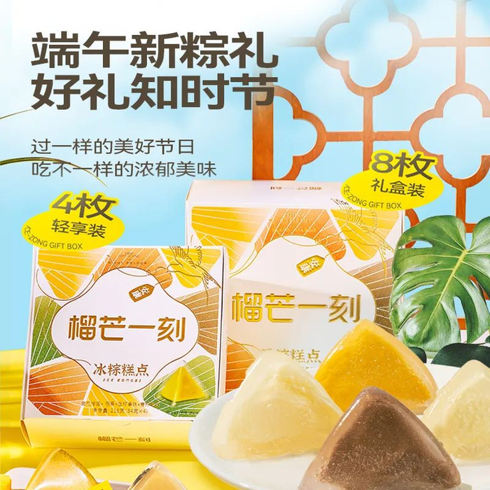 榴芒一刻榴莲冰粽999商城福利价:108元 榴莲冰粽6枚999商城福利价:138元 榴莲冰粽8枚