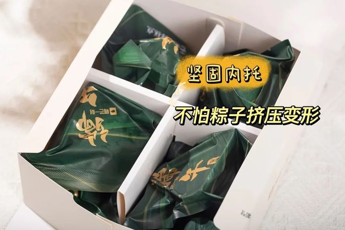 全程冰鲜运输发货,给你一路鲜到底的清凉口感。内包装采用量身订造的坚固内托,不用怕粽子因为挤压会变形。