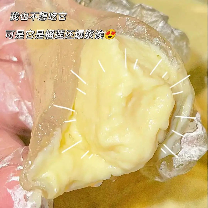 q弹冰皮,透到露馅儿,猫山王榴莲果肉塞满整个粽子,一口下去直接爆浆,没有一滴榴莲香精!这谁能忍得住啊。
