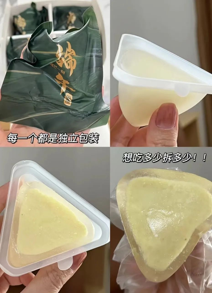 每个冰粽都是独立包装,吃几个拆几个很方便,保存在冰箱里,随时享受冰爽美味。