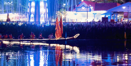 届时,结合美轮美奂的声光电水舞空间秀,两条标准龙舟将“穿上”锣鼓、罗伞、彩灯等“盛装”,在鼓点、音乐、灯光、烟火的变幻中夜游竞美。