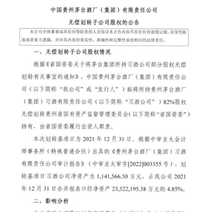 在经历了快速发展的两年半后,习酒“单飞”了。2022年7月12日,茅台集团在其官方网站发布公告称,拟将所持贵州茅台酒厂(集团)习酒有限责任公司82%股权无偿划转贵州省国资委持有,由贵州省国资委履行出资人职责。