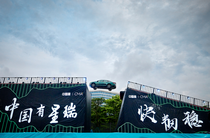 正如中国传统舞狮采青文化,考验的是狮头狮尾二人的默契配合度,以及舞狮者的灵活度、速度、稳定度、熟练度等深厚功底。星瑞这场跨越常规的“扶摇采青”高台飞车挑战,也是对“车辆马力、加速性能、驾控稳定性、1.5吨车重与动力系统匹配度”等综合机械素质的严苛试炼,要通过“60米直道极限加速-28米斜坡飞速爬坡-7米高台腾空飞跃6米后落地”三段式测试,对于产品的瞬时爆发力、中段上坡加速力、凌空飞跃的冲击力及平衡力、飞跃下坡的制动稳定性等方面都有着极高要求,整个挑战难度系数和危险系数极高,将现场的悬念和观赏性同时拉满。