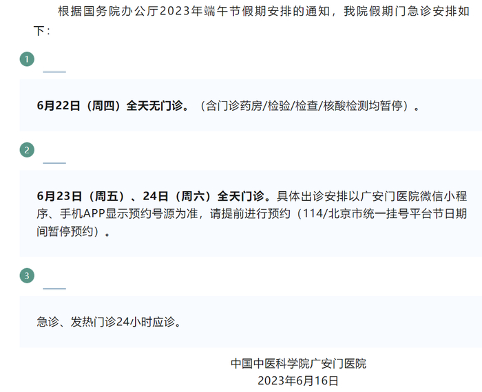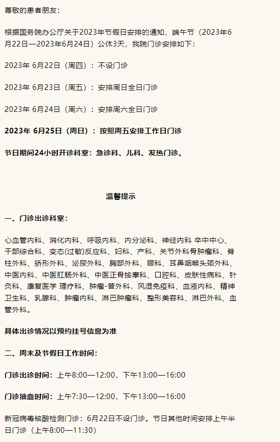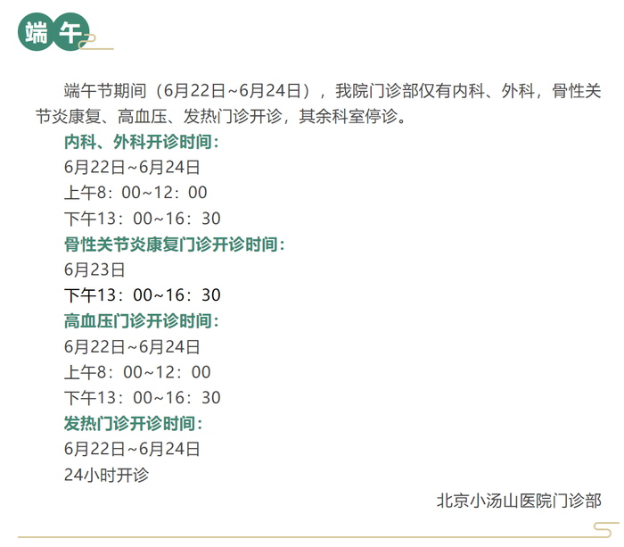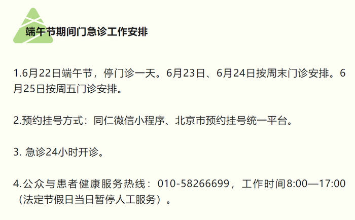 收藏转发!北京多家医院端午节期间门、急诊安排