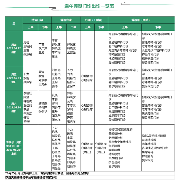 ▲以上信息仅供市民朋友们参考,如有疑问可向医院咨询,最终出诊时间以实际为准。