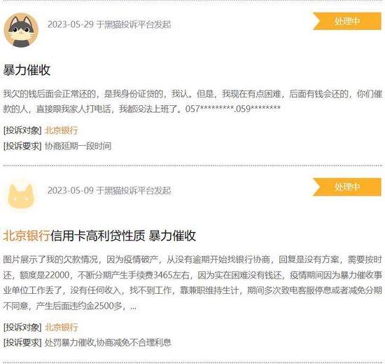 不仅如此,还有一些投诉者称北京银行存在暴力催收问题,骚扰个人通讯录,影响其正常生活。
