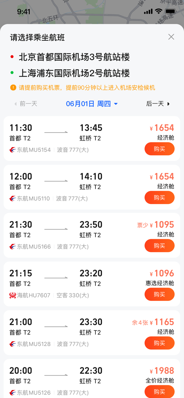例如针对方案中的公交车,会显示下一辆车抵达的站数和时间;针对飞机或火车等跨城出行方式时,除了能够显示购票链接一键购买,更能够将下车点至进站口、检票口等室内场景的距离和时间信息,一目了然地展示给用户,例如下车后距离安检口还有15分钟步行距离,抵达后行李提取转盘到上车点还有200米、约2分钟距离等实用信息, 无缝衔接各种场景,以便用户更好地计算和规划行程。