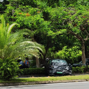 接报后,商报记者赶往现场看到,海口公安交警对周边道路进行临时管控,辖区警方在周边拉起警戒线,交警正对事故现场进行勘察。肇事的黑色特斯拉车辆横停在道路上,车头已“面目全非”,前挡风玻璃和左右前侧玻璃均已破裂,车内安全气囊、气帘全部爆开。白色观致越野车逆向斜停在人行道绿化带上,车身完全变形,右侧车身大面积凹陷,全车玻璃破裂,多个车轮脱落。在该车辆后方停车位上一台白色吉利轿车后尾箱变形,后挡风玻璃破裂,发动机盖翘起,绿化带处多块路沿石被撞碎,指示标牌弯曲变形。