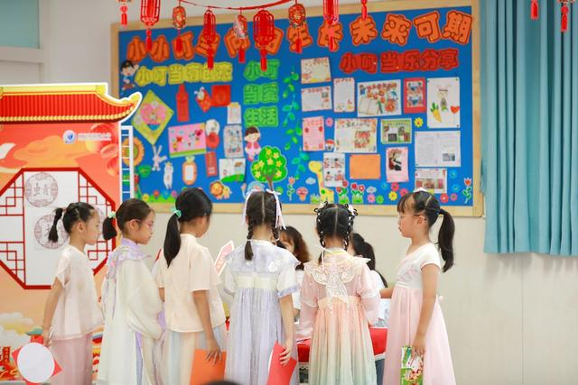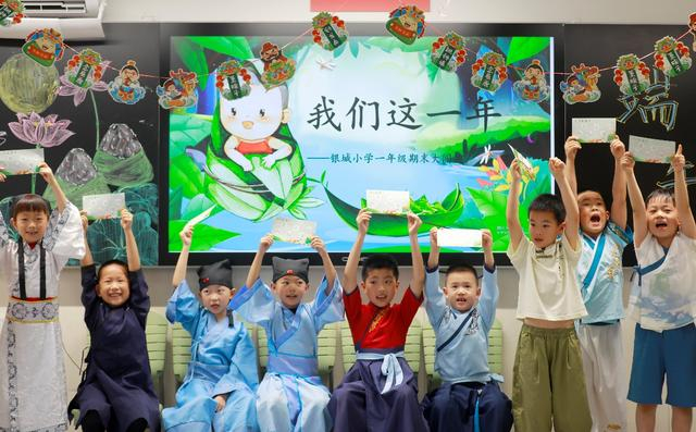 6月19日,南京市银城小学一年级的小萌娃们兴奋迎来主题为“我们这一年”的趣味闯关活动,他们身穿汉服,沉浸式体验“我们的节日”,挑战多学科有机融合游戏,在传统文化的启蒙和熏陶下,开开心心、充满乐趣地完成期末测评。