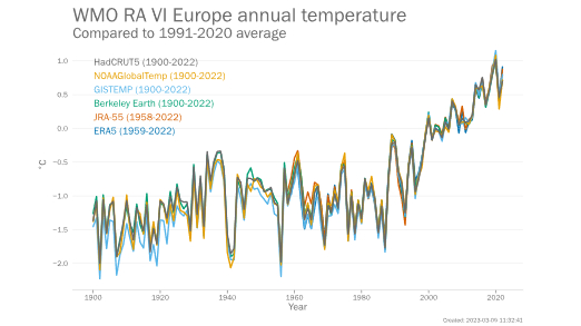 2022年,欧洲迎来了有记录以来最温暖夏天。比利时、法国、德国、爱尔兰、意大利、卢森堡、葡萄牙、西班牙、瑞士和英国在内的一些国家出现了有记录以来最温暖的一年。