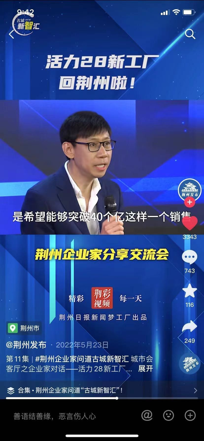 在荆州市政府网站上,可以检索到发布于2022年5月25日一篇题为《活力28:老企业焕发新生机》的文章。文中写道:“位于荆州开发区荆监一级公路旁的活力集团工业园项目正在紧张建设之中,活力研发综合大楼即将封顶,同时建设的还有年产10万吨的洗衣液生产线,年产10万吨的洗洁精生产线,年产5万吨的洗手液、沐浴露生产线和年产5万吨的消毒液生产线。”