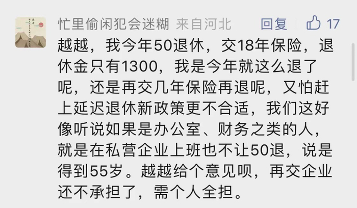 我看到一些真实法案中,很多打工人希望推迟退休。