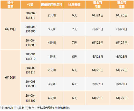 单从计息时间来看,目前端午国债逆回购最佳操作日期是本周二(6月20日)。当日,投资者可以借出1天期逆回购(沪市逆回购简称GC001,代码204001;深市逆回购简称R-001,代码131810),就可以收获5天利息,资金在6月26日盘前已可取。