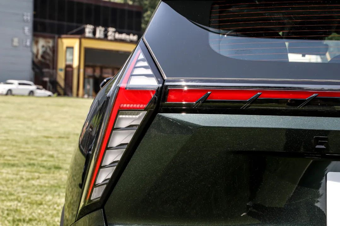 尾部整体看起来比较厚重且敦实,数字箭矢LED贯穿尾灯内部拥有290颗光源,达到了633nm波长的超红LED点亮后鲜艳通透,也同样拥有迎宾/欢送场景呈现流光灯语,仪式感满满。