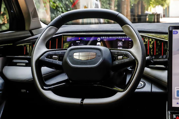 博越L荣耀版的车内在用料层面足够下本,大面积真皮+麂皮材质的运用使车内整体的档次感再次提升。据官方介绍,该车提供了三种双拼内饰配色,分别为棕色+蓝色的“秋日原野棕”、白色+蓝色的“冬日雪山白”和灰色+蓝色的“夏日泉水蓝”。