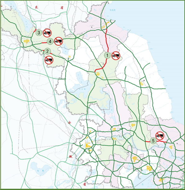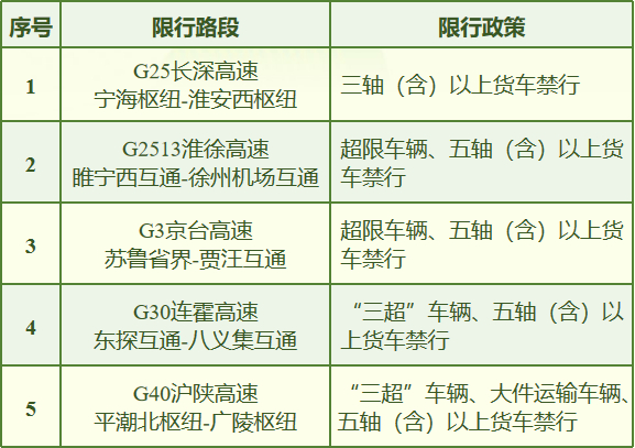 端午期间,江苏高速全路网全时段禁行危化品车辆,部分路段因施工实施临时限货通行,主要集中在苏北地区。