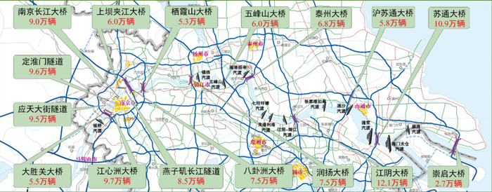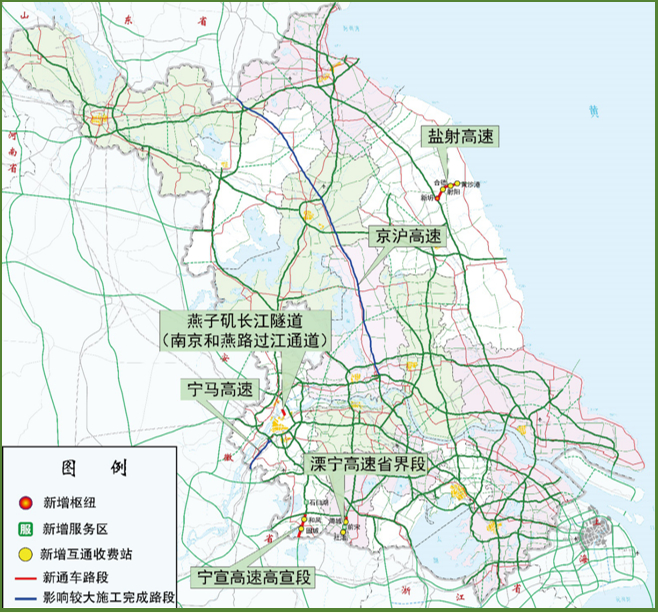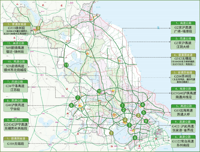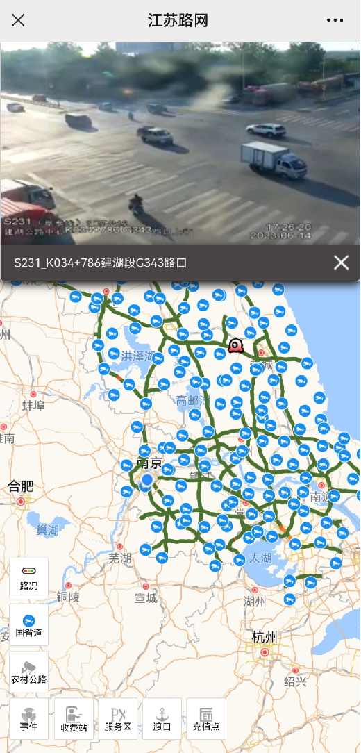 此外,公众还可通过道路可变情报板、江苏交通广播网、江苏交通出行网等了解路况信息,出行时可参考导航软件推荐的出行路线。
