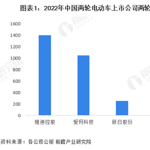从2022年各司两轮电动车销量来看,雅迪控股是我国两轮电动车销量最高的上市企业,达1401万辆;其次为爱玛科技,2022年共售出两轮电动车1051万辆,两家企业按两轮电动车销量口径计算,共占领了43.2%的市场份额。