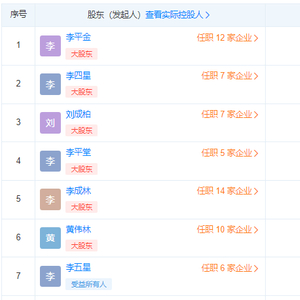中快餐饮集团股东,李平金、李四星确认为兄弟,其余李氏股东大概率亦为家庭成员 图片来源:天眼查
