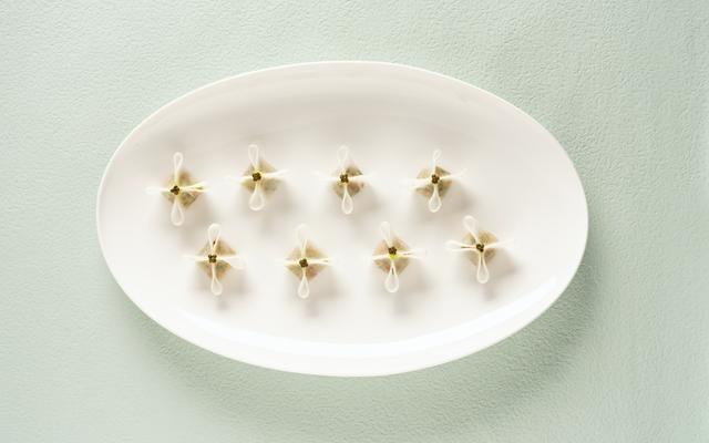 糟香酥骨低温黄鱼冻是一道十分惊艳的凉菜,选用东海黄鱼,焖压四小时至鱼骨酥烂,用糟卤鸡汤做底,保留传统鱼冻的制作方法,晶莹剔透,入口酥烂,口感丰腴。鱼子酱鳌虾萝卜饺子也不容错过,萝卜是南京人喜欢的食材之一,把虾肉切成大颗粒做馅,加上潮州咸菜与绿豆泥,以玲珑剔透的萝卜片为皮,顶部加以鱼子酱点缀,颇为清爽。