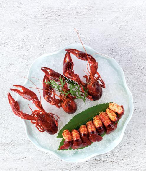 小龙虾爱好者不能错过“糟香小龙虾”。糟味是盛行于江浙一带的烹饪法,主厨添加陈年花雕酒,小龙虾经焯水后置入糟卤中4个小时,酒糟的浓香咸鲜沁入小龙虾,酒香若隐若现,十分过瘾。