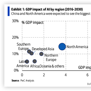 美银援引普华永道报告指,AI浪潮下,中国GDP增长幅度最大,其次是美国所在的北美地区